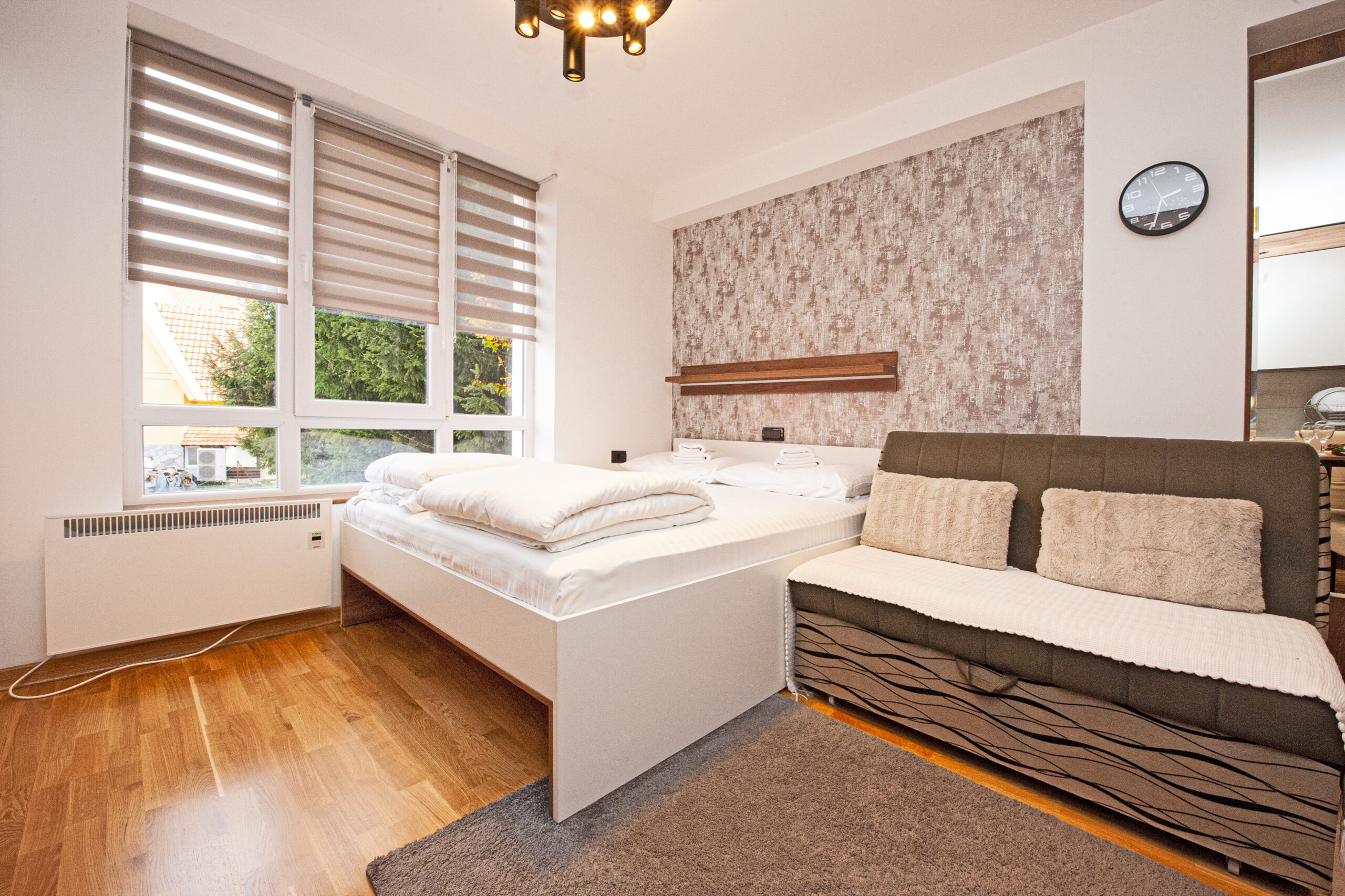 - Bračni krevet + kauč na razvlačenje + krevetac na zahtev